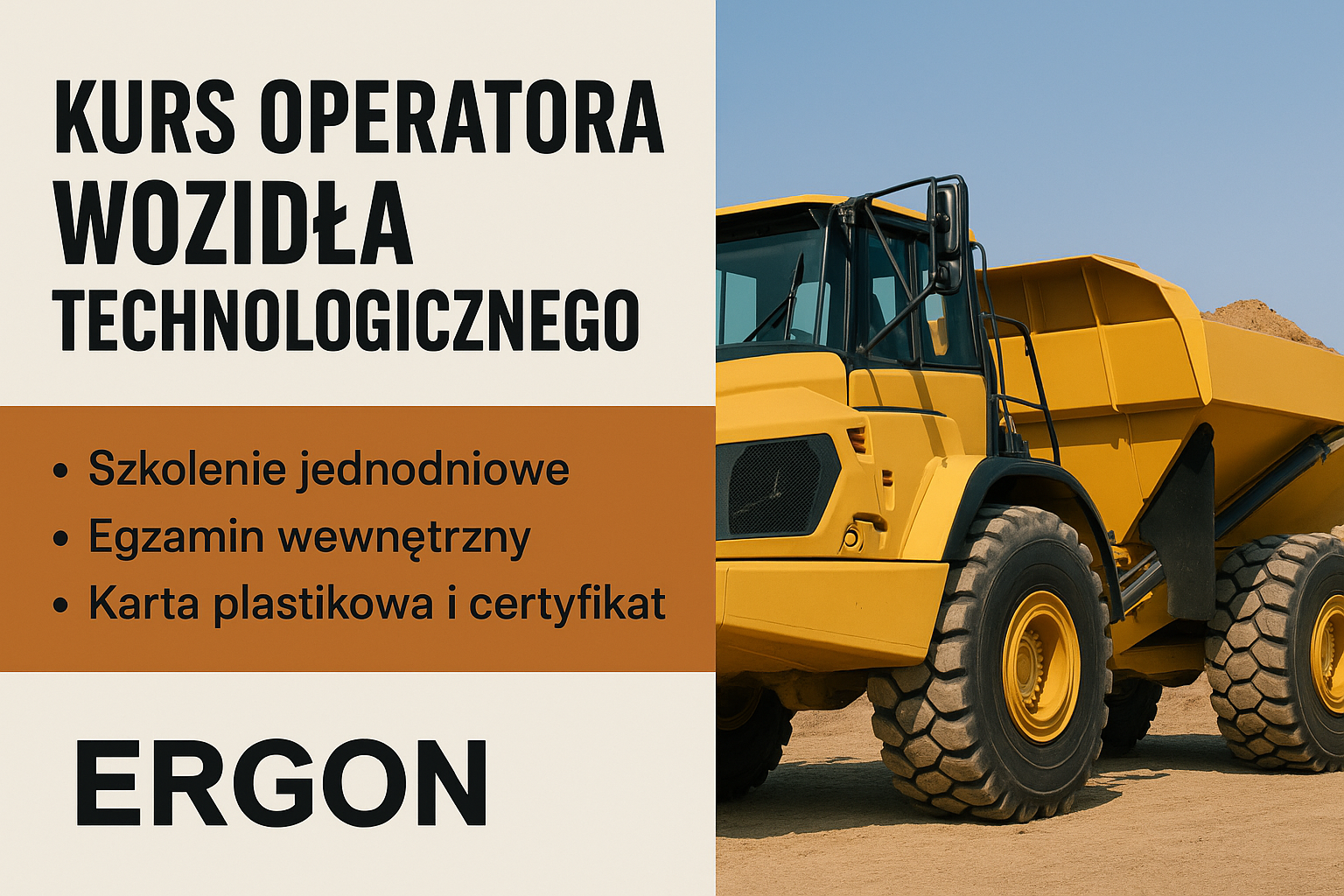 Ośrodek Doskonalenia Kadr ERGON oferuje profesjonalny, jednodniowy kurs na operatora wozidła technologicznego (budowlanego). Szkolenie prowadzone jest w formie stacjonarnej, z podziałem na część teoretyczną i praktyczną – zgodnie z tradycyjnymi standardami szkoleń technicznych. Program został opracowany tak, aby spełniał wymogi branżowe i zapewniał uczestnikom kompleksowe przygotowanie z zakresu bezpiecznej i efektywnej obsługi wozidła . Udział w kursie mogą wziąć osoby pełnoletnie (warunek ukończonych 18 lat ) nieposiadające przeciwwskazań zdrowotnych do pracy jako operator. Zajęcia kończą się egzaminem wewnętrznym, po którego zdaniu uczestnicy otrzymują imienne uprawnienia (plastikowa karta operatora) oraz oficjalny certyfikat ukończenia kursu.